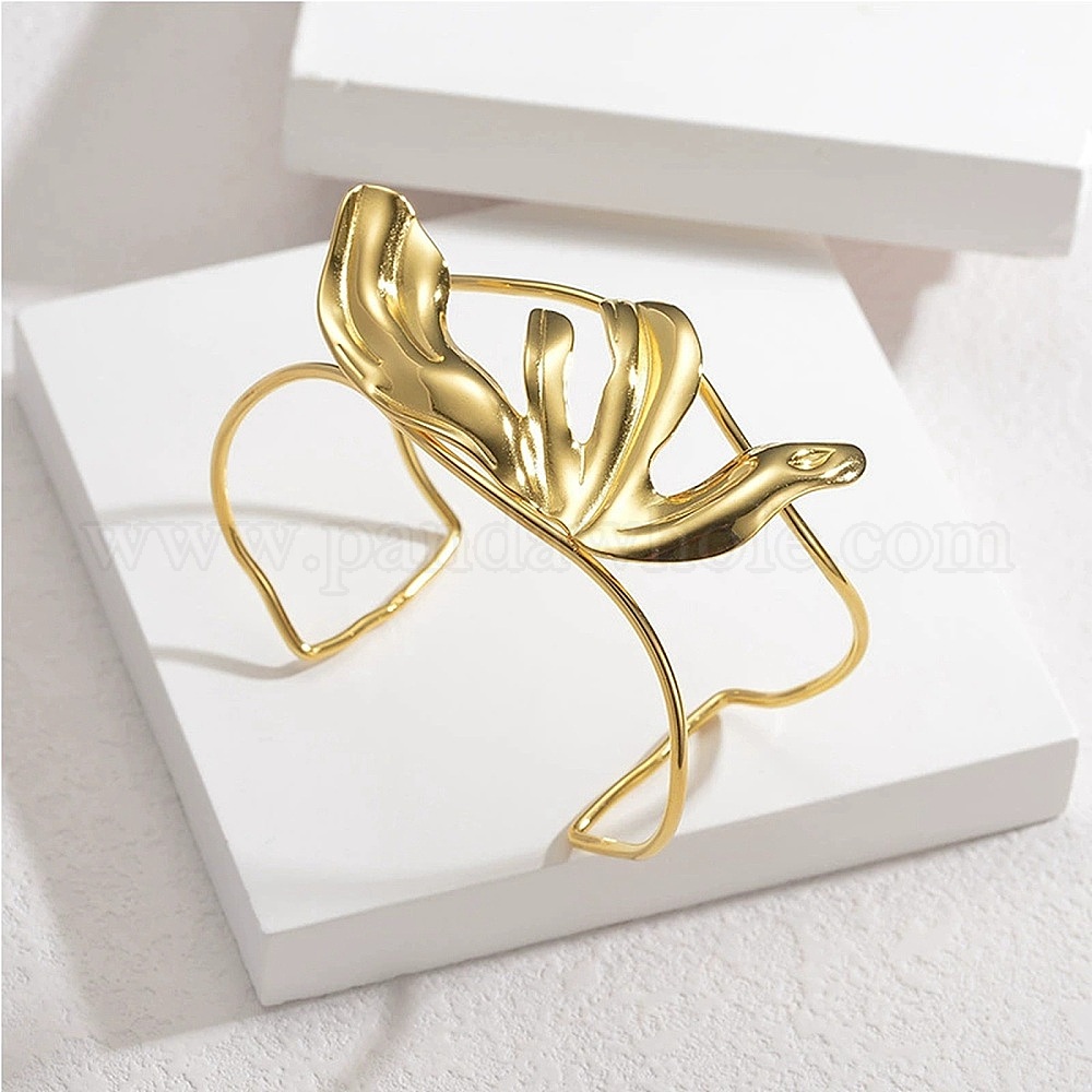 304 женские браслеты-манжеты из нержавеющей стали, цветок, выдолбить
