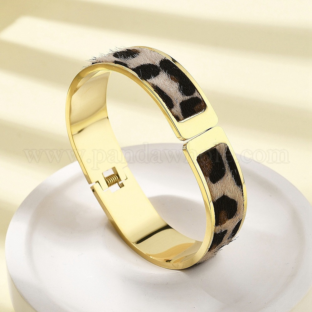 304 женские шарнирные браслеты из нержавеющей стали, с леопардовым принтом искусственная кожа мех, ионное покрытие (ip)