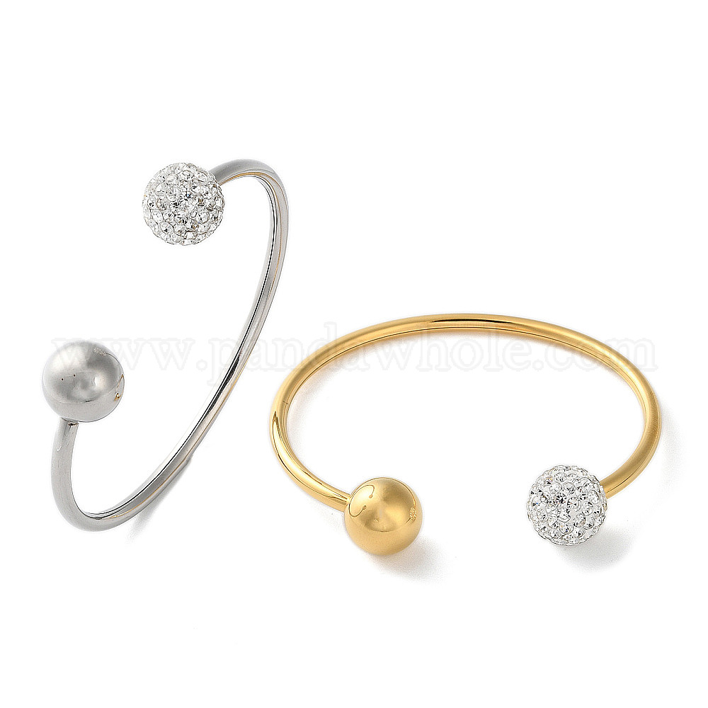 304 из нержавеющей стали манжеты браслеты, браслеты с крутящим моментом для женщин, с полимерной глиной горный хрусталь