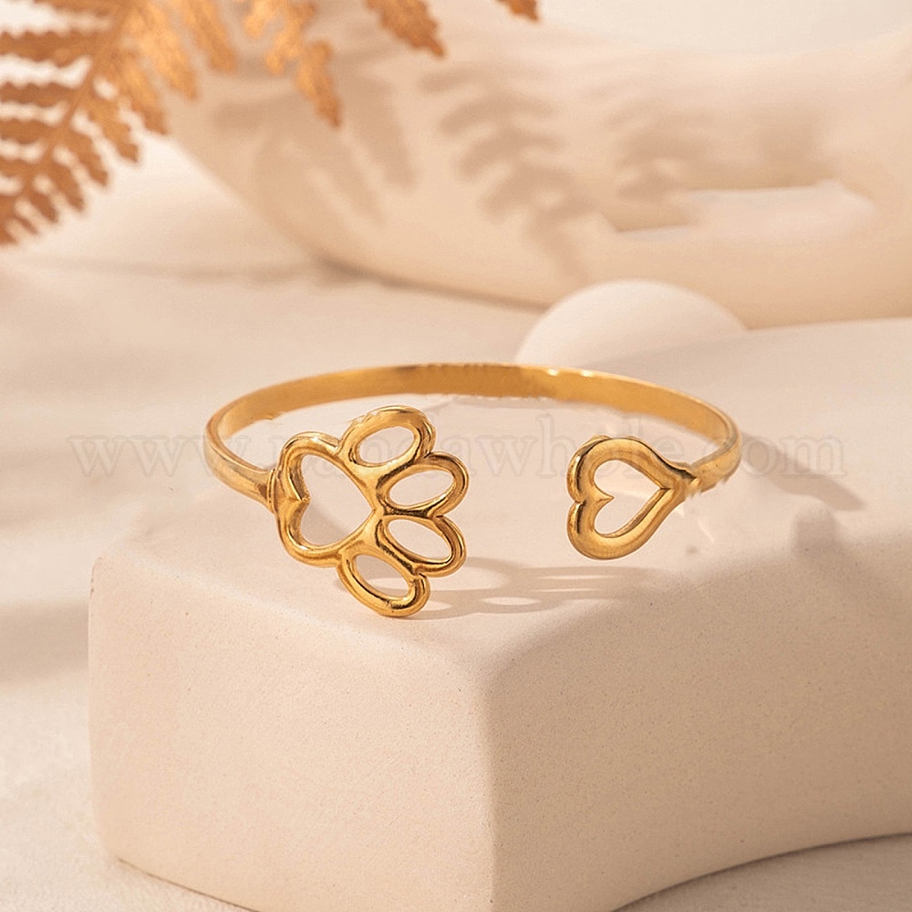 304 женские браслеты-манжеты из нержавеющей стали, отпечаток кошачьей лапки и сердце