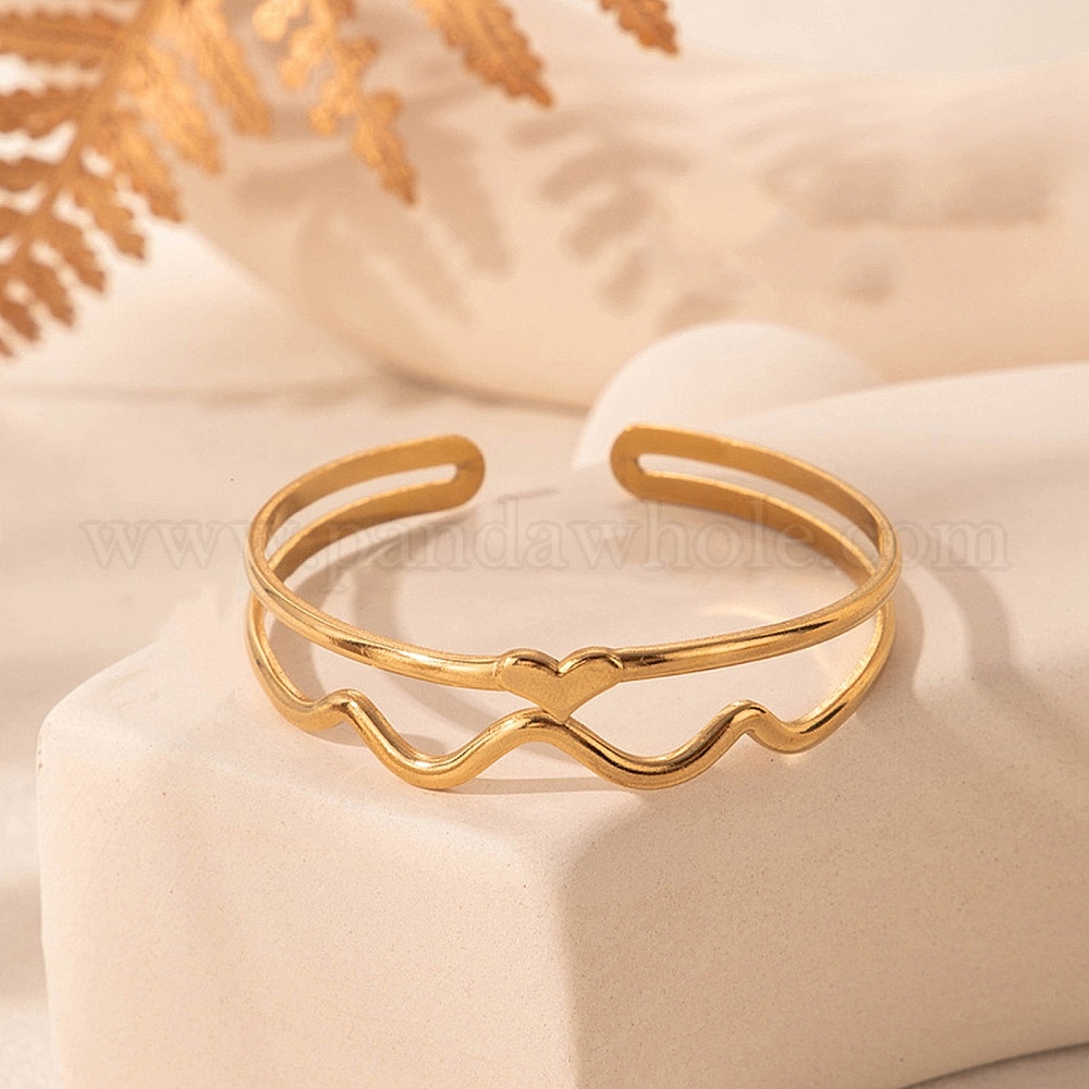 304 женские браслеты-манжеты из нержавеющей стали, сердце