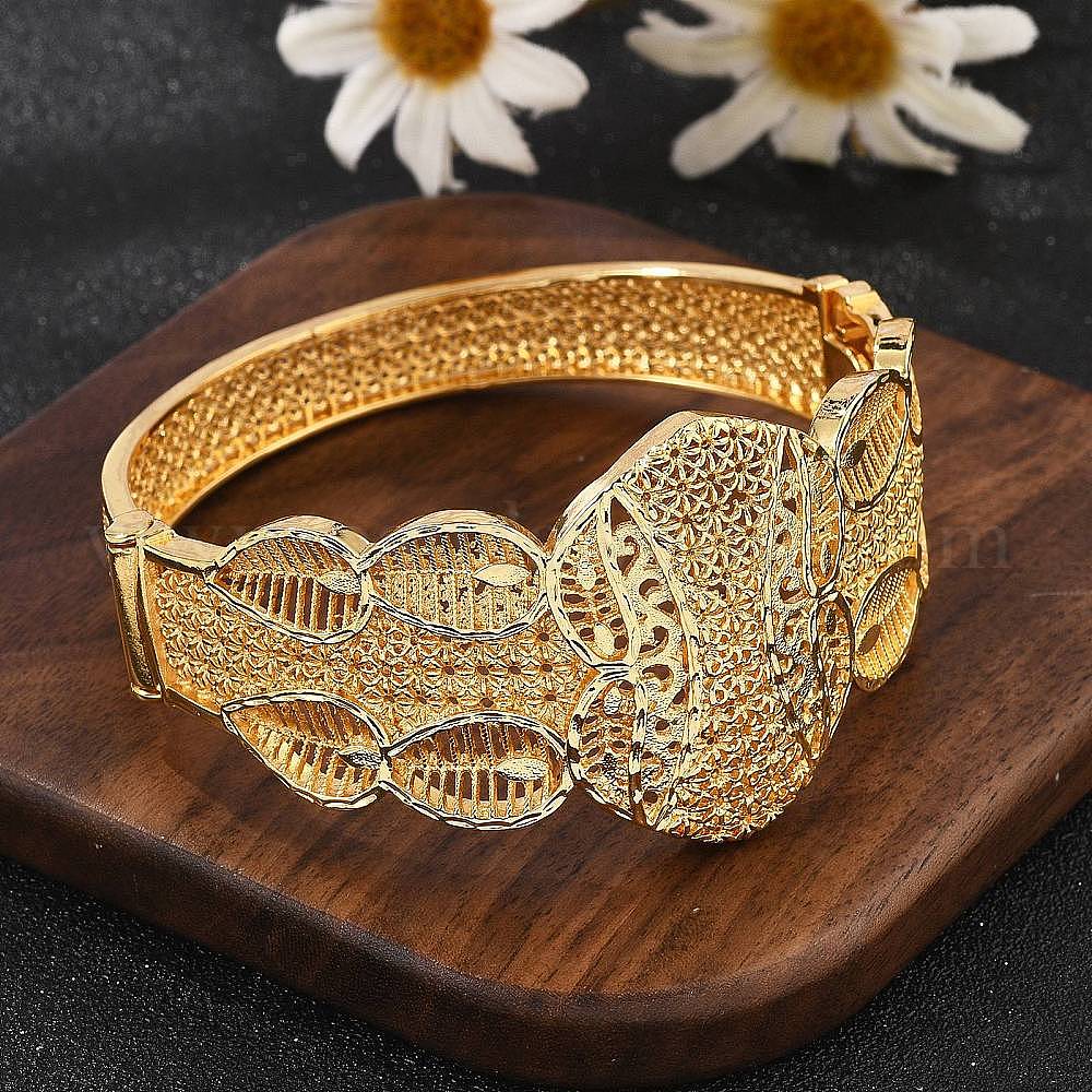 • Золотой Латунные браслеты для женщин, стойки покрытие, золотые, 1-3/8 дюйм (3.5 см), внутренний диаметр: 2-3/8 дюйм (6 см) x 2-1/2 дюйм (6.2 см)