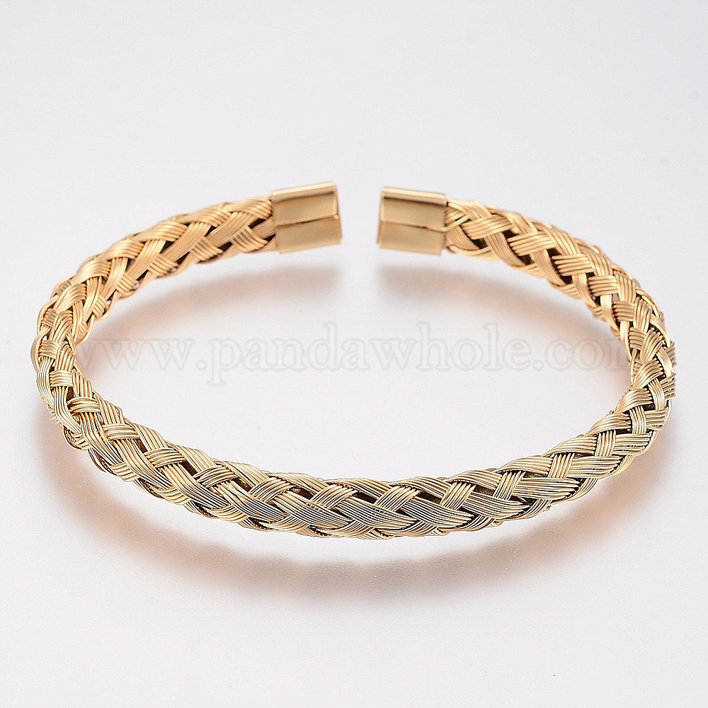 • Настоящее золото 18K Ионное покрытие (ip) 304 браслеты-манжеты из нержавеющей стали, браслеты-торсионы, реальный 18 k позолоченный, 55x60 мм (2-1/8 дюйм x 2-3/8 дюйм)
