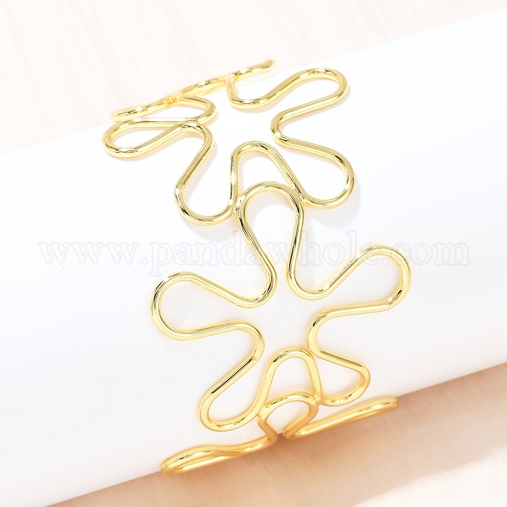 Полые латунные манжеты браслеты для женщин, цветок, стойки покрытие, долговечный, без кадмия и без свинца