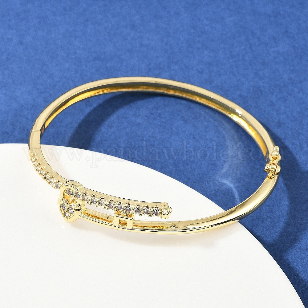 Браслеты из латуни с прозрачным кубическим цирконием в микропаве, шарнирные браслеты для женщин, сердце замок и ключ, стойки покрытие, долговечный, без свинца и без кадмия