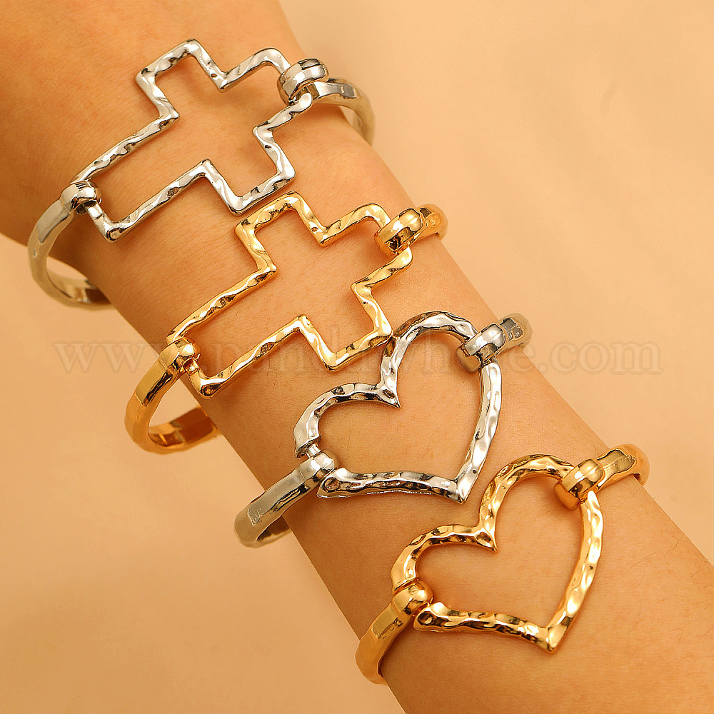 • Сердце Браслеты из сплава для женщин, золотые, сердце, внутренний диаметр: 2-1/4 дюйм (5.7 см)