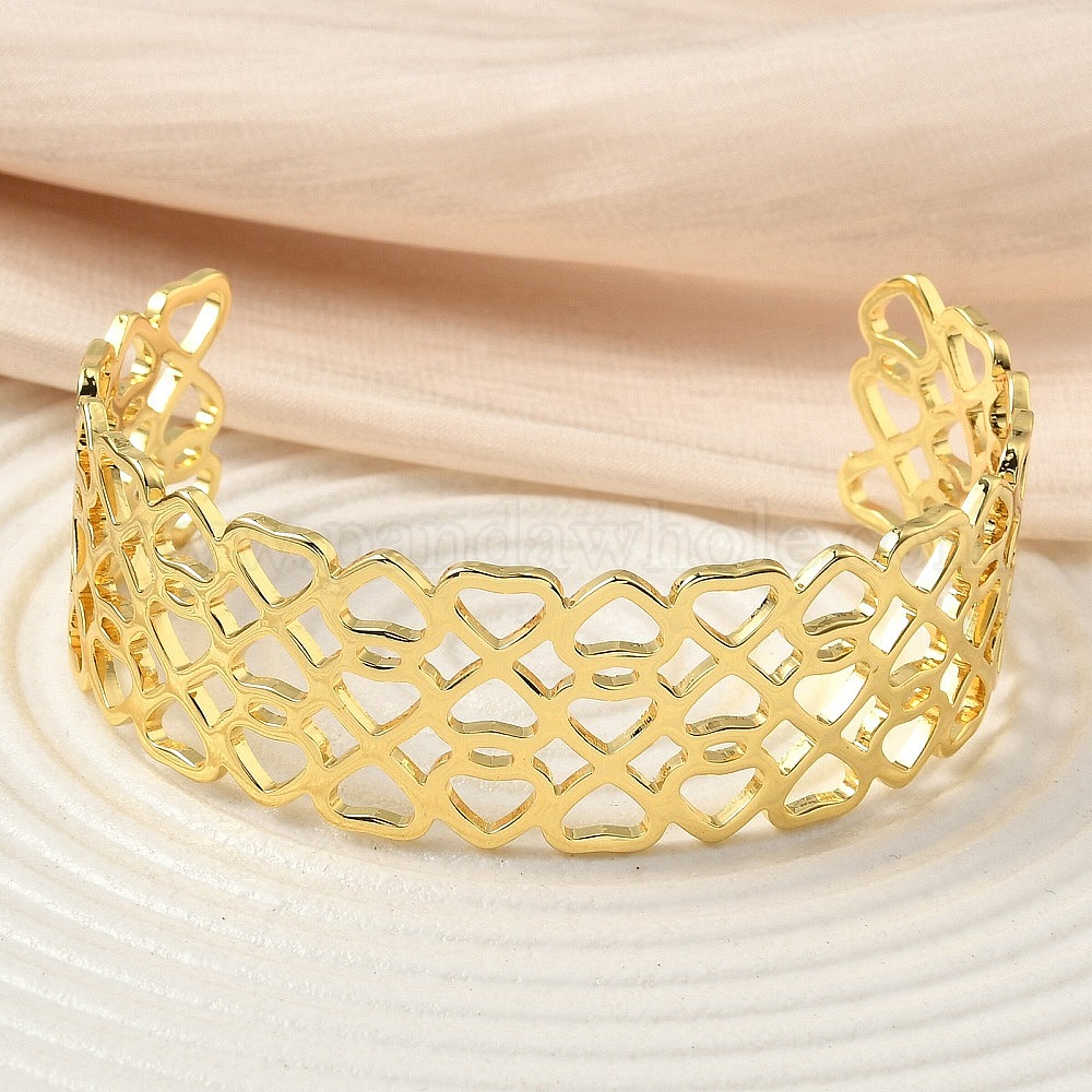 Полые латунные манжеты браслеты для женщин, Сердце Pattern, стойки покрытие, долговечный, без свинца и без кадмия