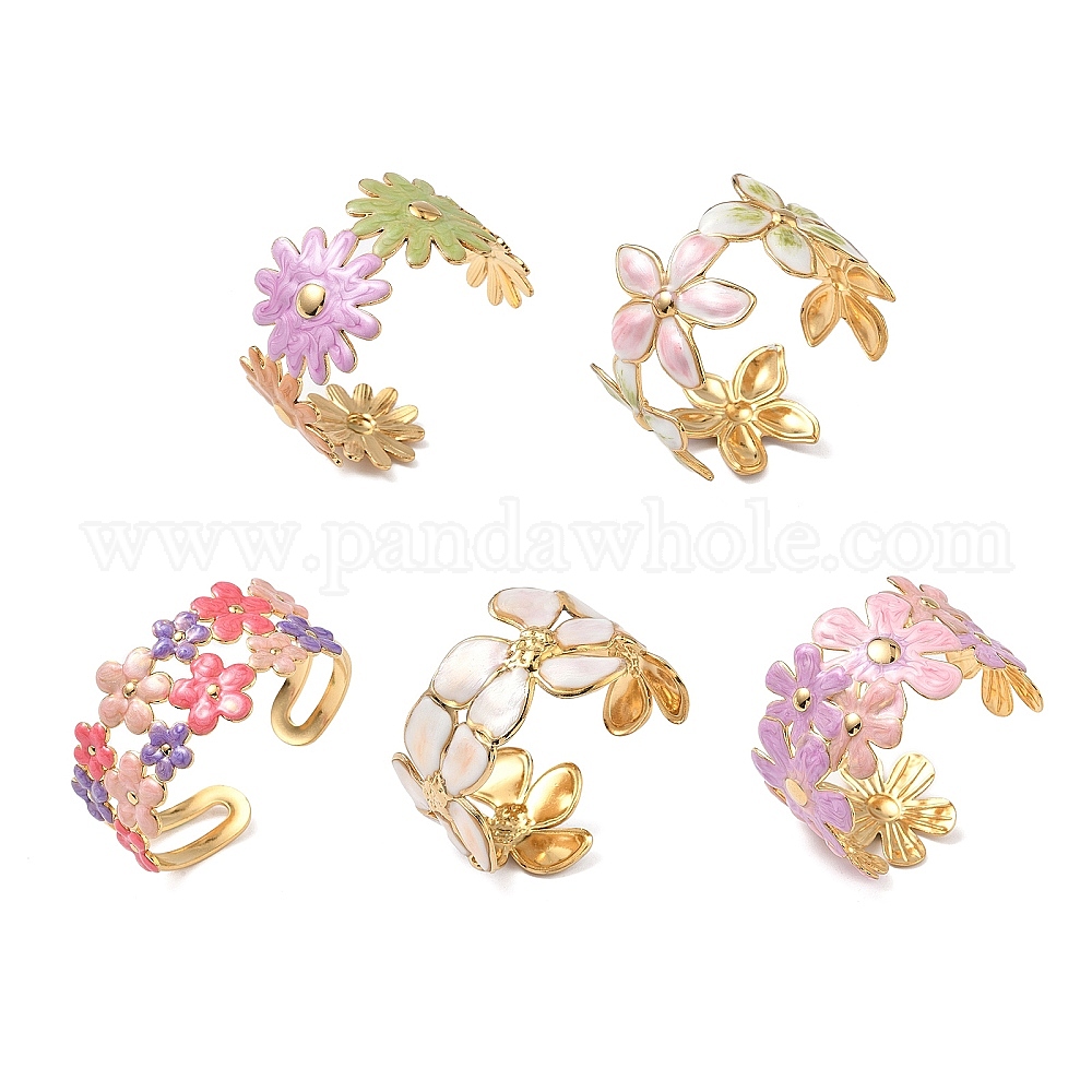 304 женские браслеты-манжеты из нержавеющей стали, цветок, с эмалью