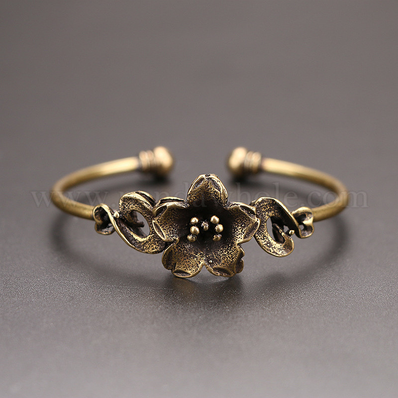 • Античная Бронза Латунь манжеты браслеты, браслеты с крутящим моментом для женщин, цветок, античная бронза, внутренний диаметр: 2.64 дюйм (6.7 см), ширина 11мм