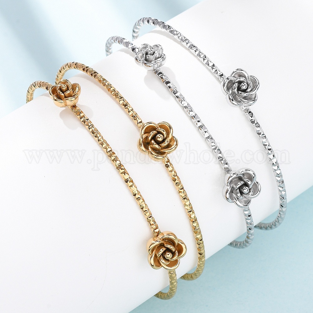 304 женские браслеты-манжеты из нержавеющей стали, цветок розы