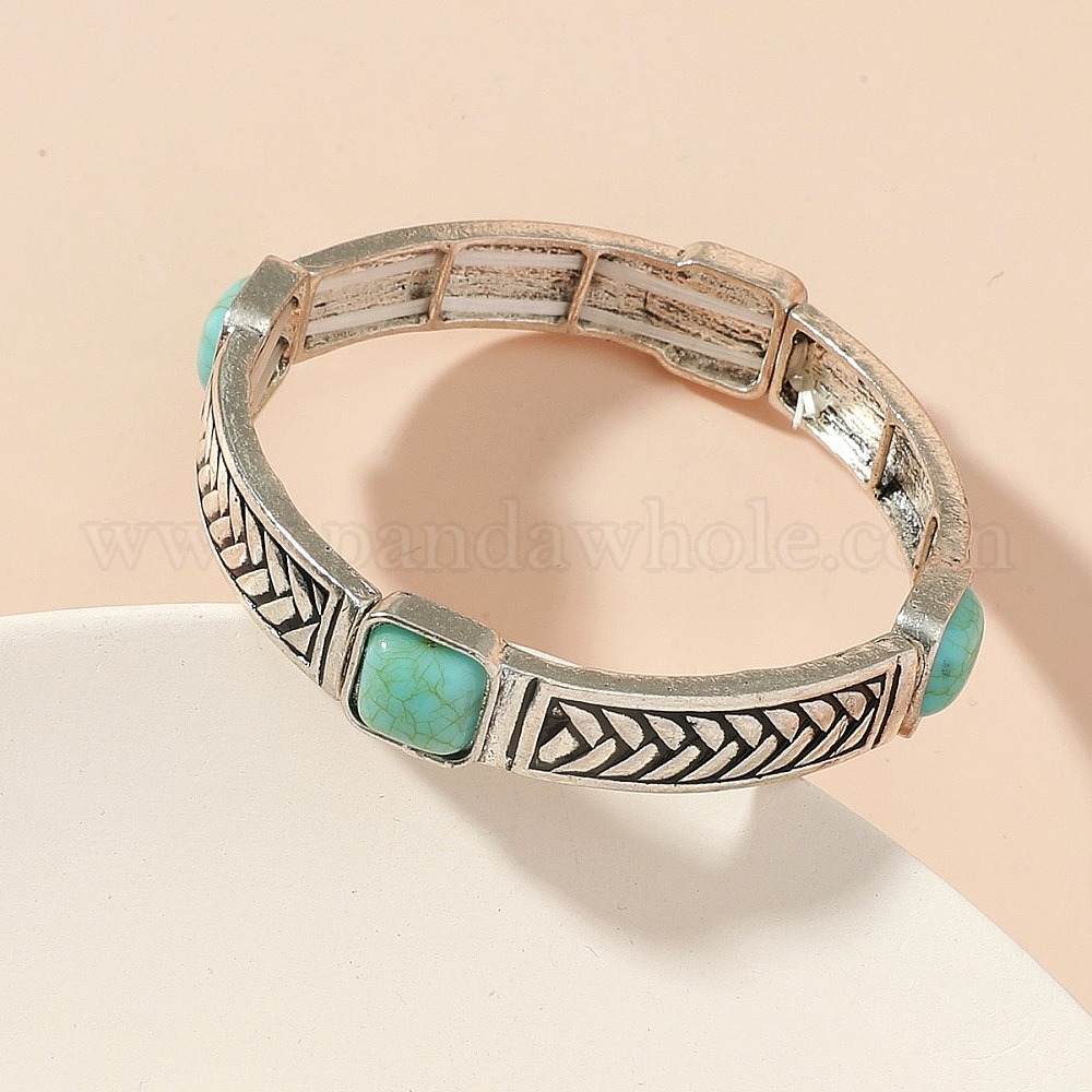 Богемные браслеты из сплава и синтетической бирюзы с гравировкой для женщин., квадратный