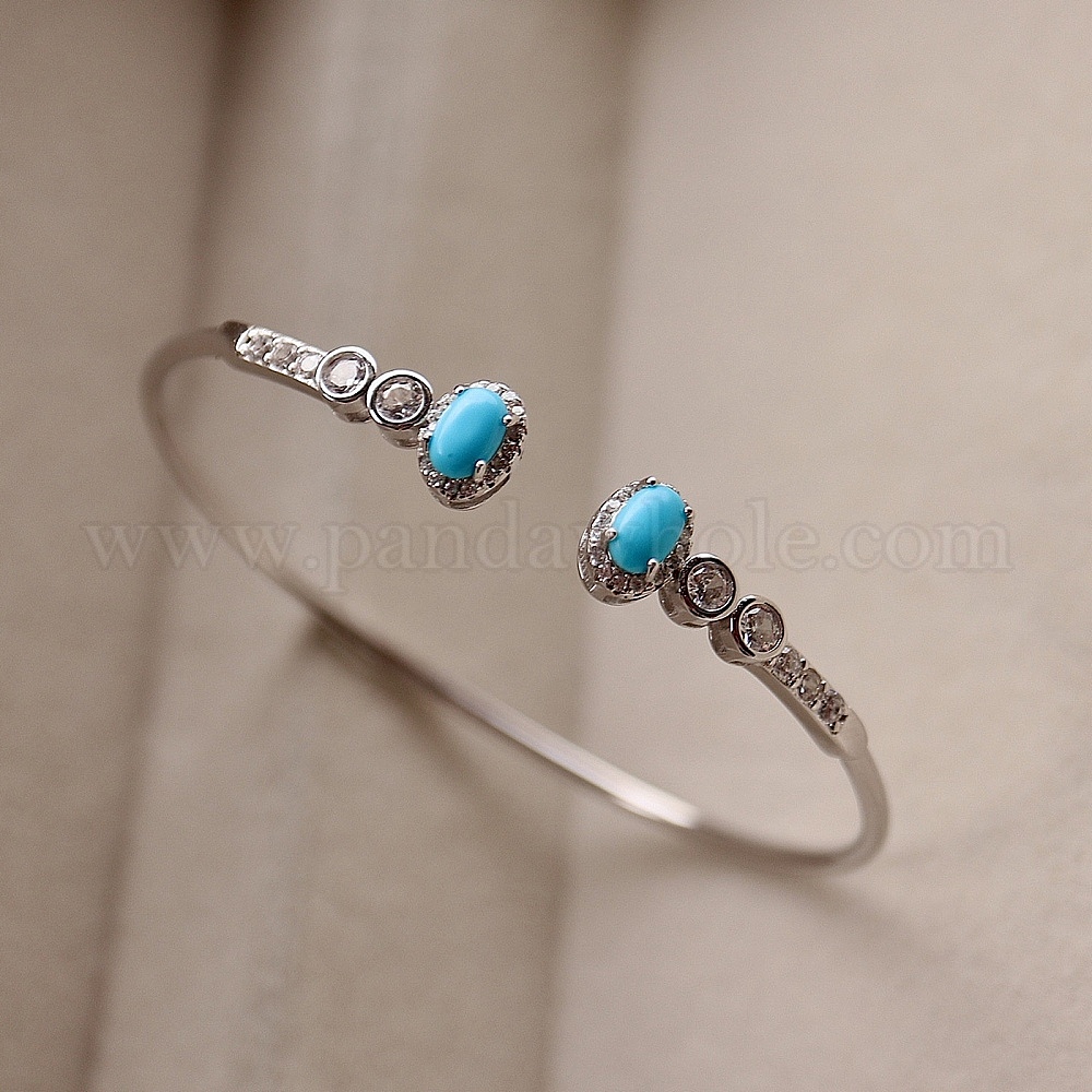 • Синтетическая Бирюза Браслеты-манжеты из синтетической бирюзы для женщин, овальные, с стерлингового серебра, внутренний диаметр: 2.32 дюйм (5.9 см)