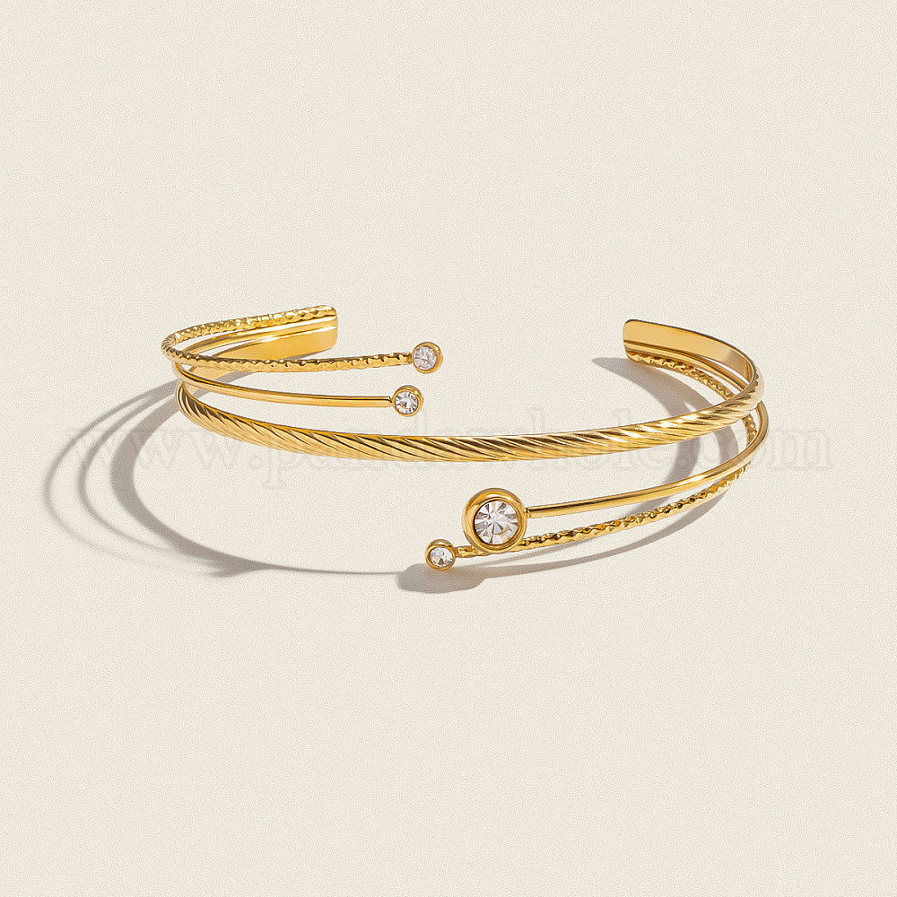 304 Браслет-манжета из нержавеющей стали с микропаве из кубического циркония, многослойный, для женщин, плоско-круглые, долговечный