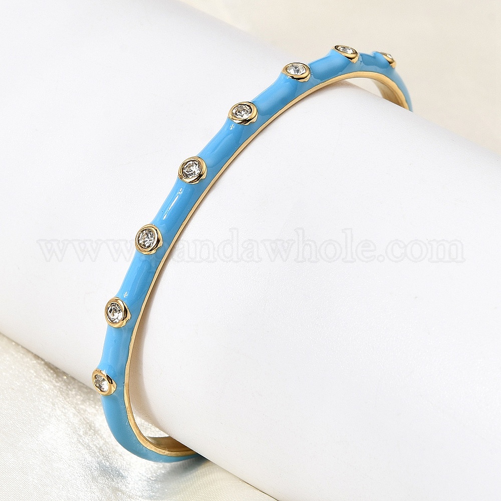 304 эмалированные браслеты-манжеты из нержавеющей стали для женщин, со стразами, ионное покрытие (ip), голубой