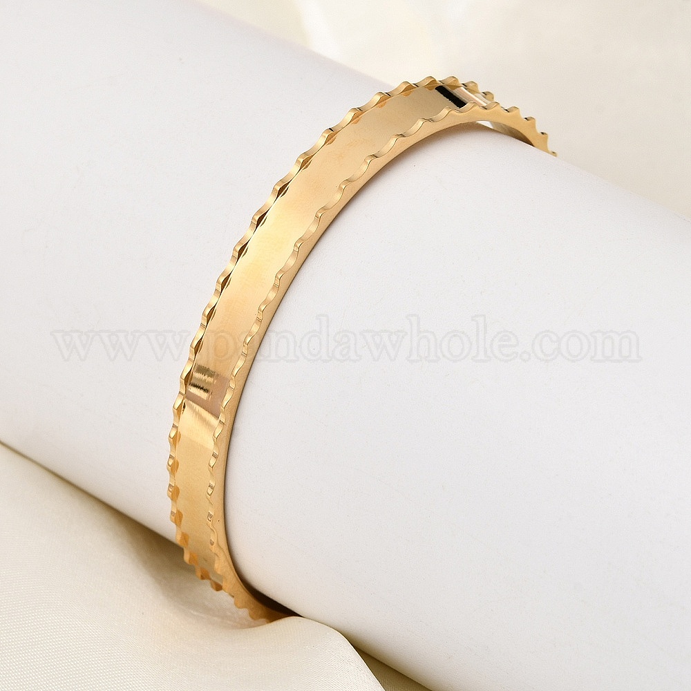 • Настоящее золото 18K Браслеты-манжеты из нержавеющей стали с зубчатым краем для женщин, ионное покрытие (ip), реальный 304 k позолоченный, внутренний диаметр: 18 дюйм (1.97 см) x 5 дюйм (2.56 см)