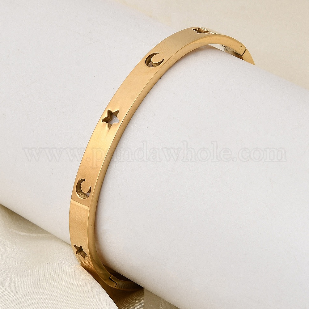 304 женские шарнирные браслеты из нержавеющей стали, звезда и луна, ионное покрытие (ip)