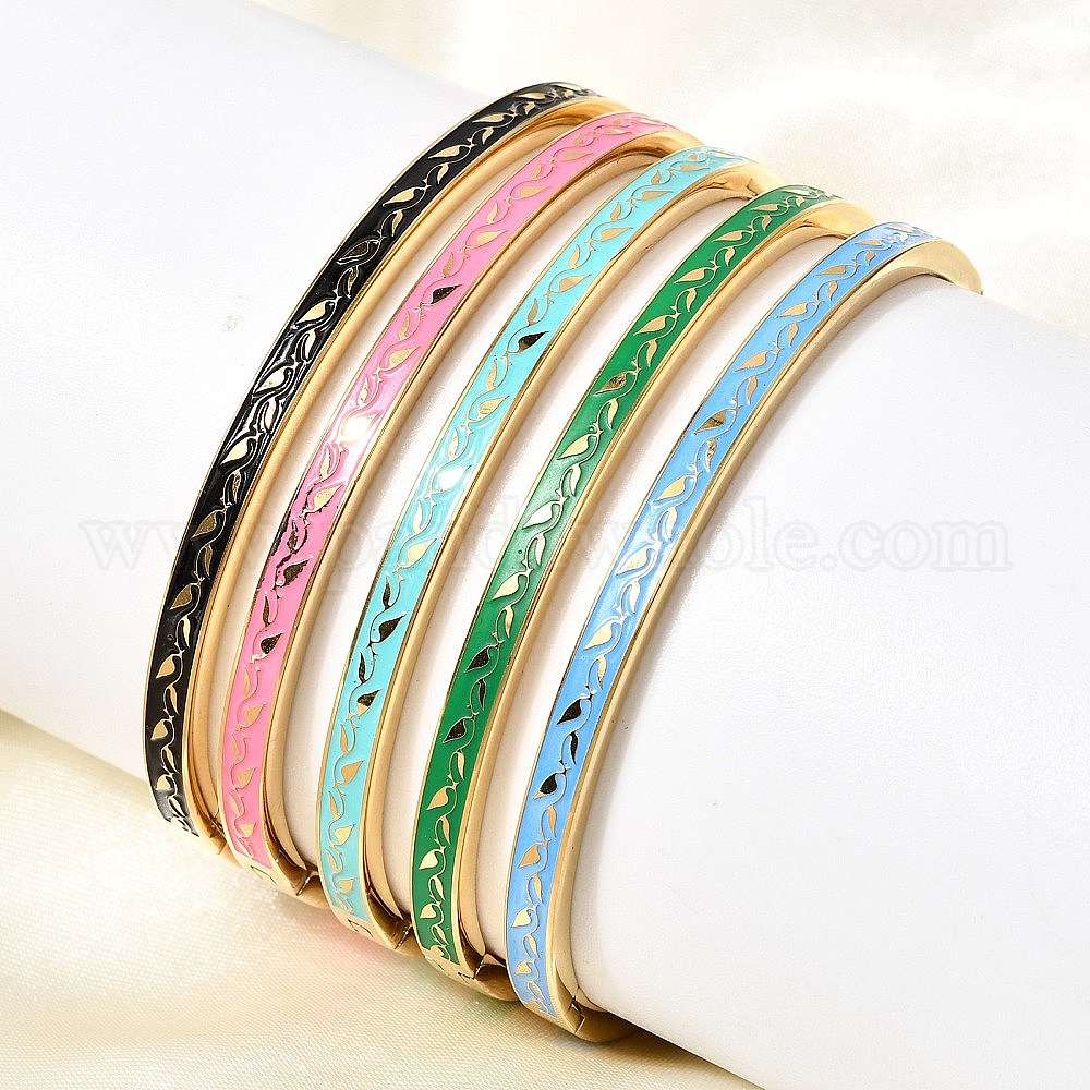 304 из нержавеющей стали эмаль браслеты, шарнирные браслеты для женщин, лист, ионное покрытие (ip)