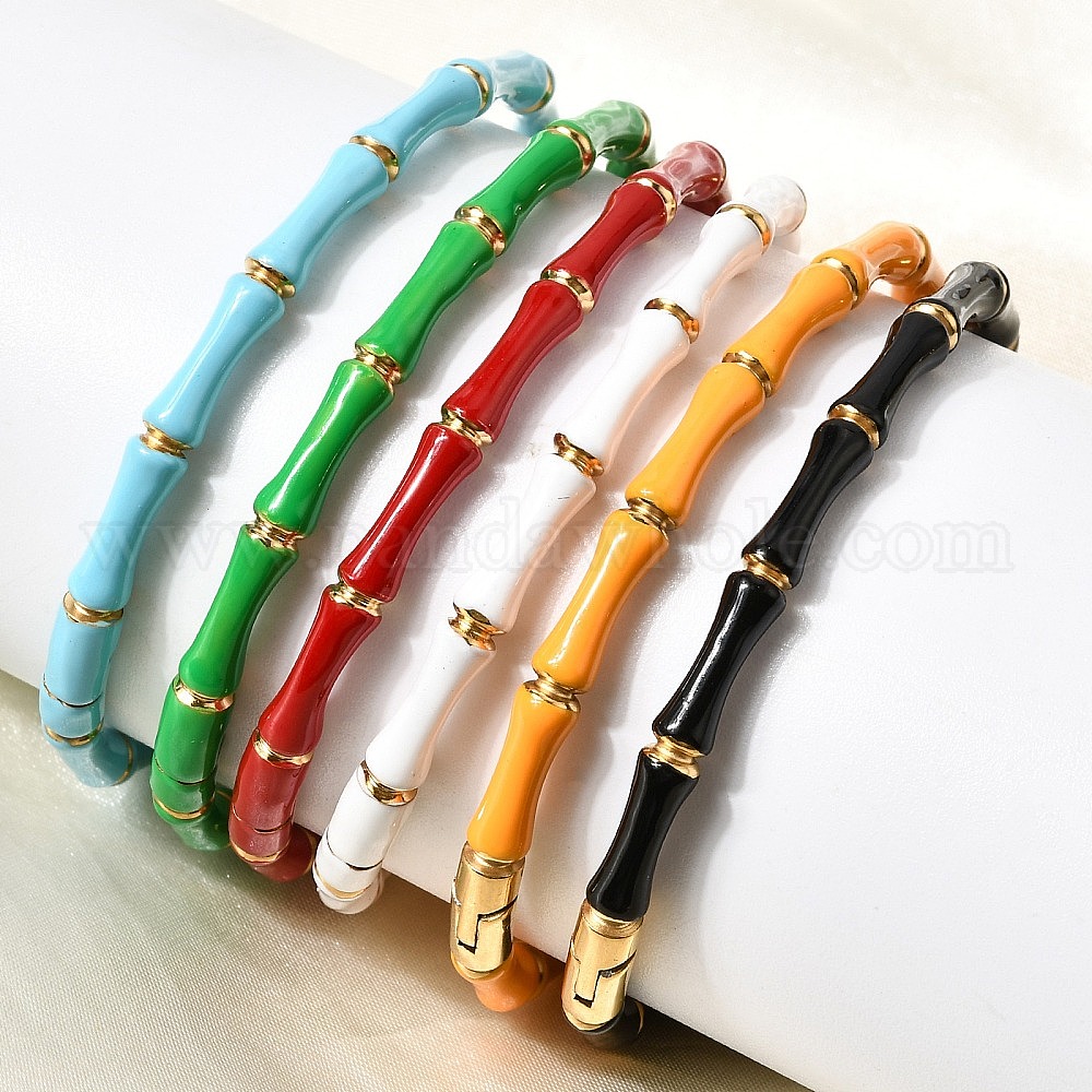 304 Женские браслеты из нержавеющей стали с эмалированным покрытием и шарнирным креплением, бамбук совместное, ионное покрытие (ip)