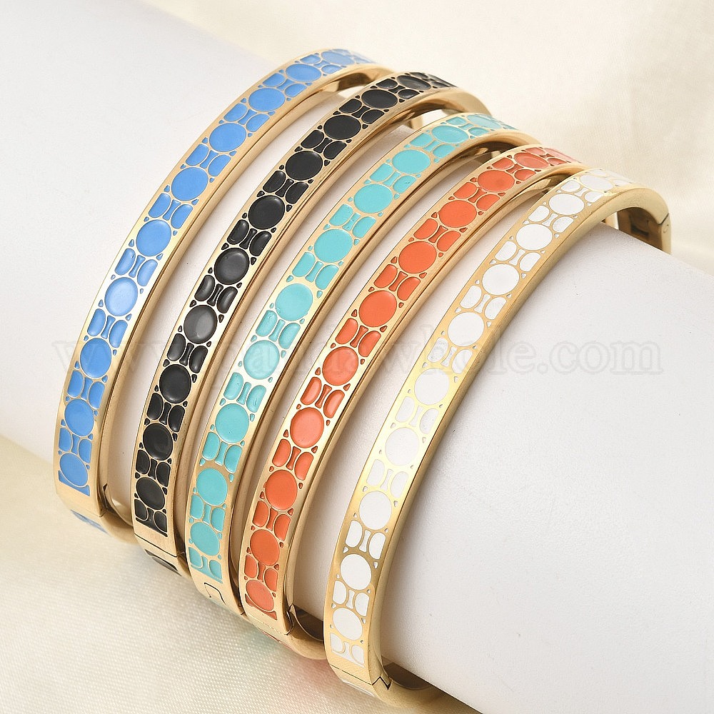 304 Браслеты из нержавеющей стали с эмалированным покрытием и шарнирным креплением, широкие браслеты для женщин, плоско-круглые, ионное покрытие (ip)