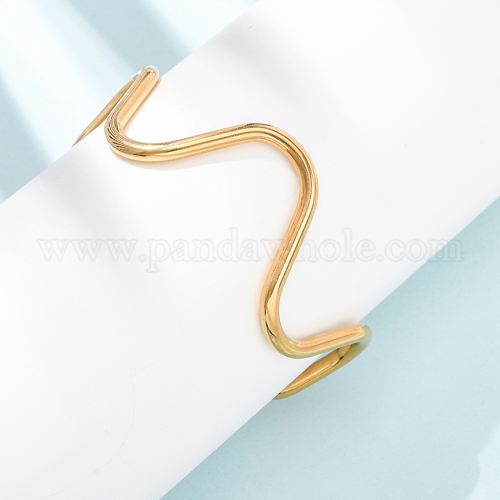 304 женские браслеты-манжеты из нержавеющей стали, волна, ионное покрытие (ip), долговечный
