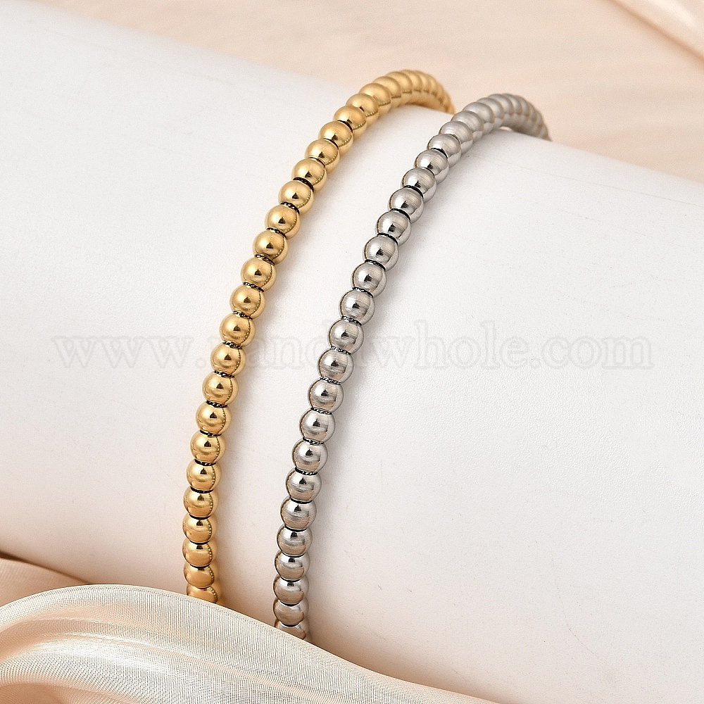 304 Круглые браслеты из нержавеющей стали с бусинами для женщин