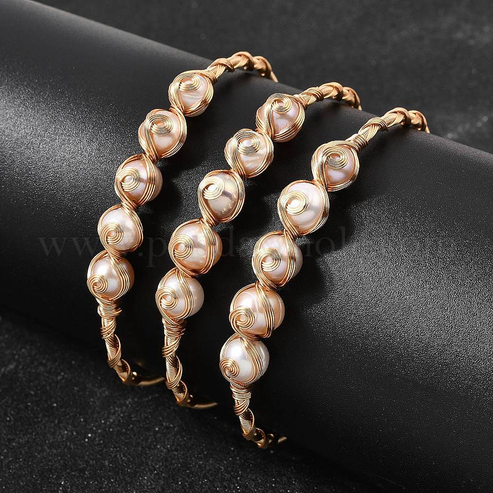 Браслеты-манжеты для женщин, обмотанные латунной проволокой и украшенные натуральным жемчугом., круглые, стойки покрытие, долговечный