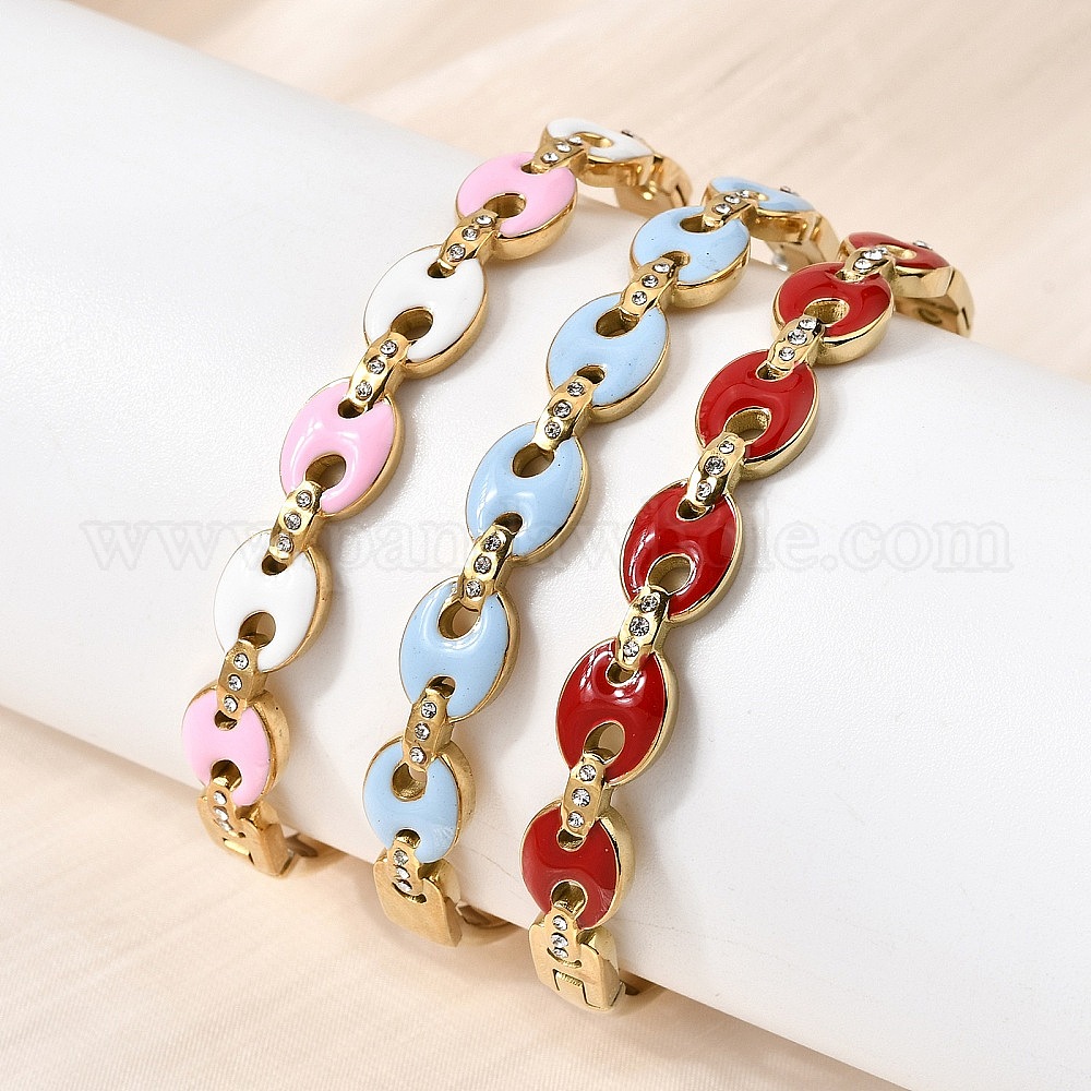 304 Браслеты из нержавеющей стали с эмалированным покрытием и шарнирным креплением, браслеты из кофейных зерен для женщин, со стразами, реальный 18 k позолоченный, ионное покрытие (ip), долговечный