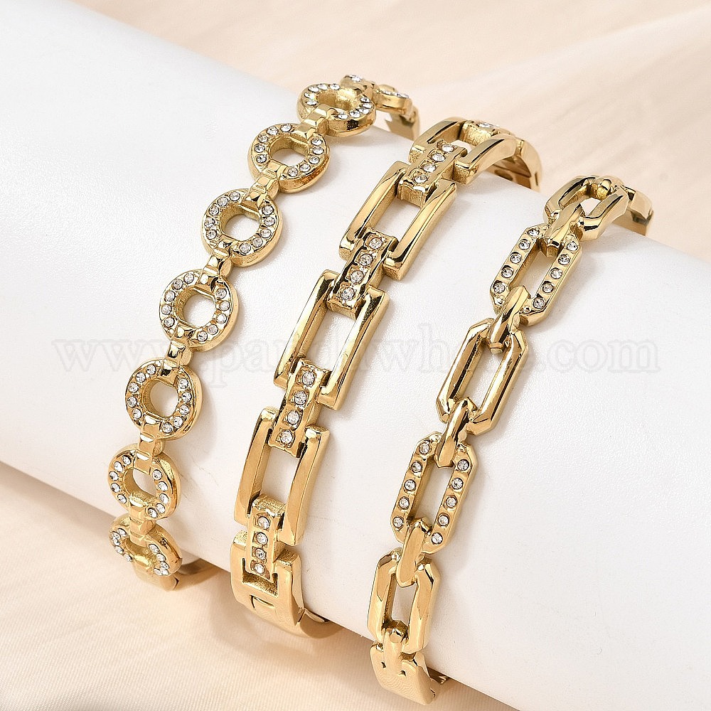 304 Шарнирные браслеты из нержавеющей стали со стразами для женщин, реальный 18 k позолоченный, ионное покрытие (ip), долговечный