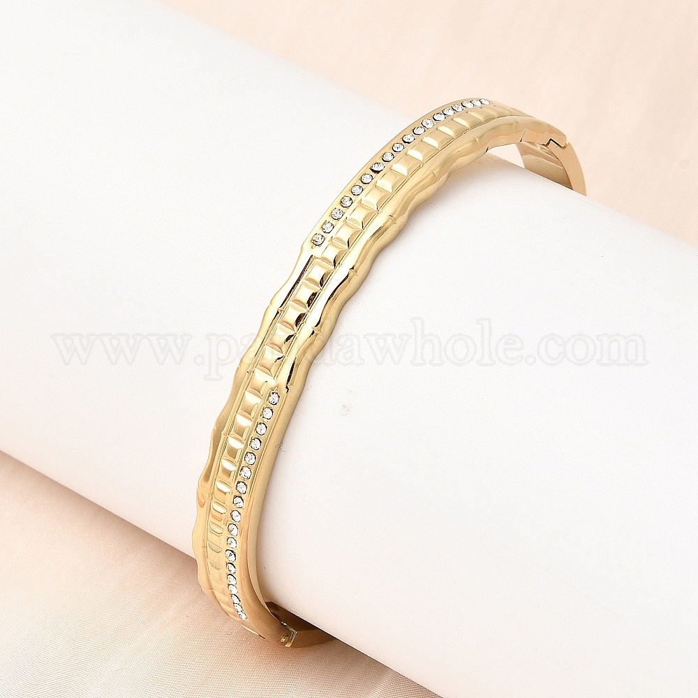 304 Шарнирные браслеты из нержавеющей стали со стразами для женщин, квадратный, реальный 18 k позолоченный, ионное покрытие (ip), долговечный