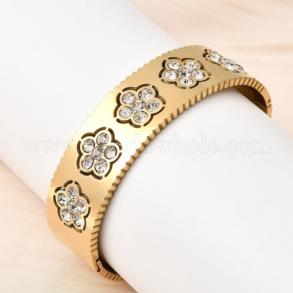 304 Браслеты-подвески из нержавеющей стали с прозрачными кубическими циркониями для женщин, цветок, ионное покрытие (ip), долговечный