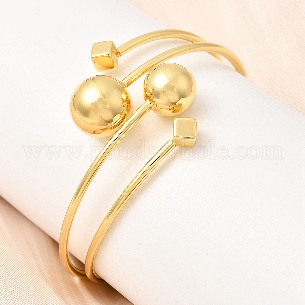 Латунь манжеты браслеты для женщин, круглый и куб, без кадмия и без свинца, стойки покрытие, долговечный