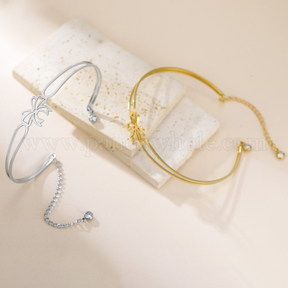 • Золотой 304 женские браслеты-манжеты из нержавеющей стали, бантом, золотые, 6.30 дюйм (16 см)