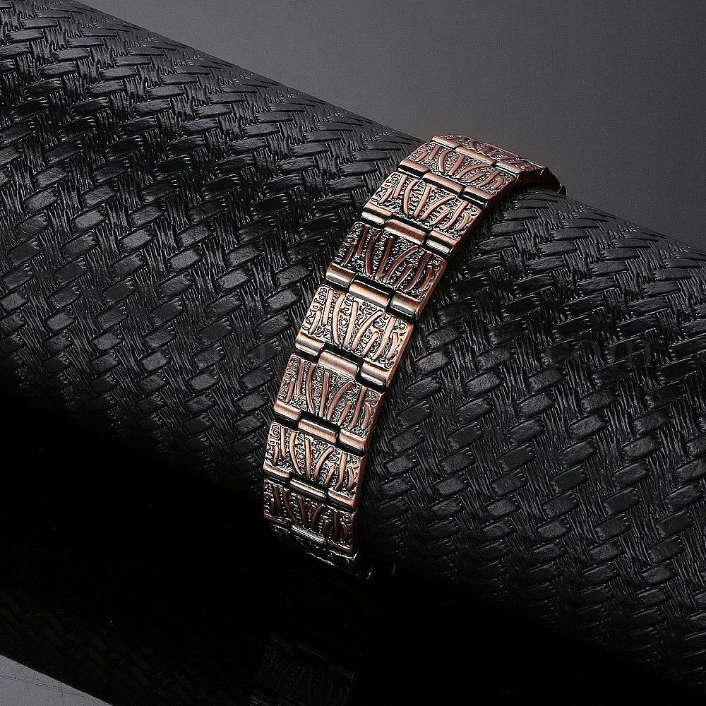 • Красная Медь Латунные магнитные браслеты для часов, регулируемые браслеты для мужчин, племенные модели, Красная медь, 8.46 дюйм (21.5 см)