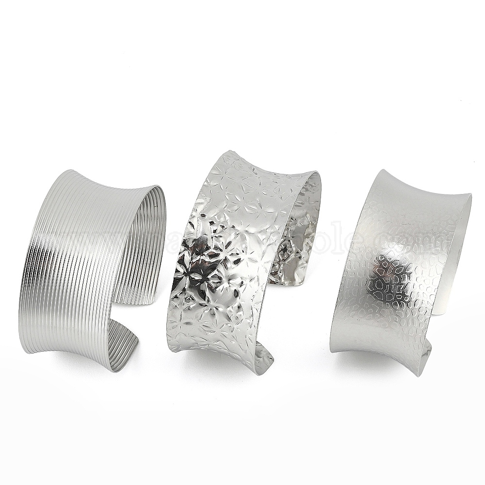 • Самородки 304 Широкие открытые браслеты-манжеты из нержавеющей стали для женщин, самородки, внутренний диаметр: 2.09 дюйм (5.3 см), шириной 29 мм