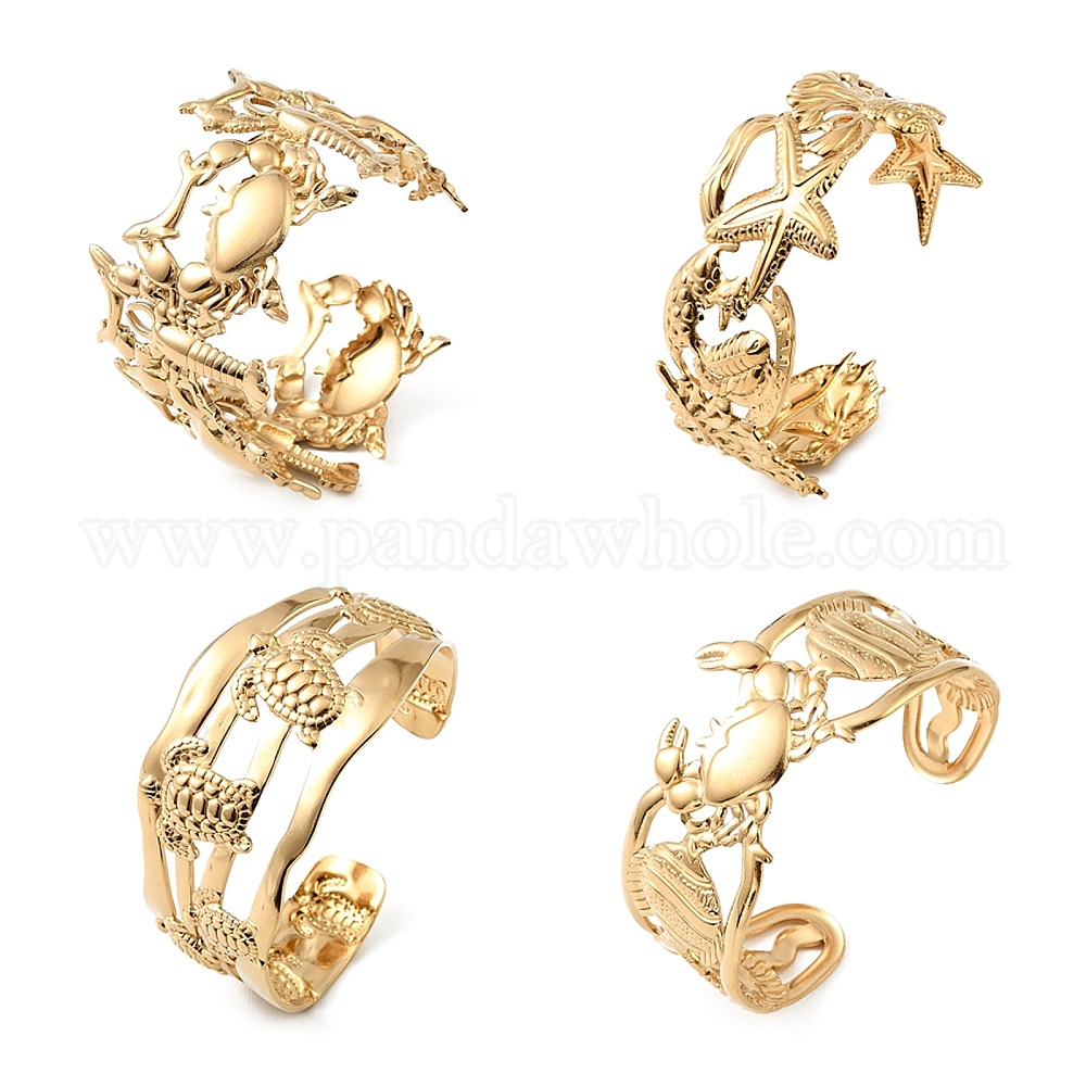 Морская тематика 304 Браслеты-манжеты из нержавеющей стали для женщин, золотые (03BHYA)