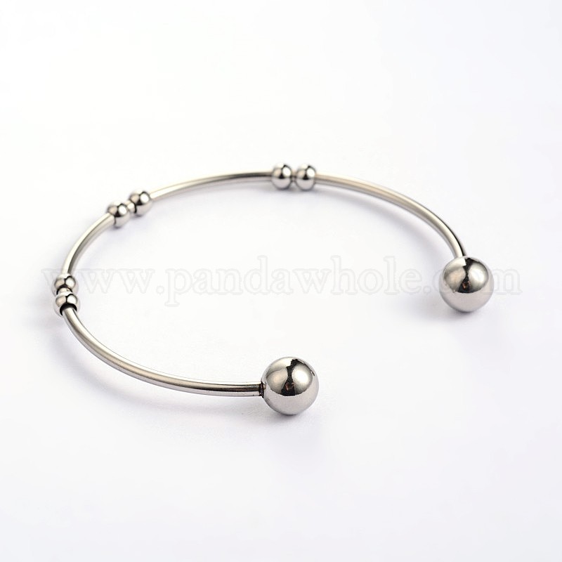 • Нержавеющая Сталь Цвет Устойчивые к потускнению 304 браслеты-манжеты из нержавеющей стали, с круглых бусин, цвет нержавеющей стали, 54.5x51 мм, 2 мм