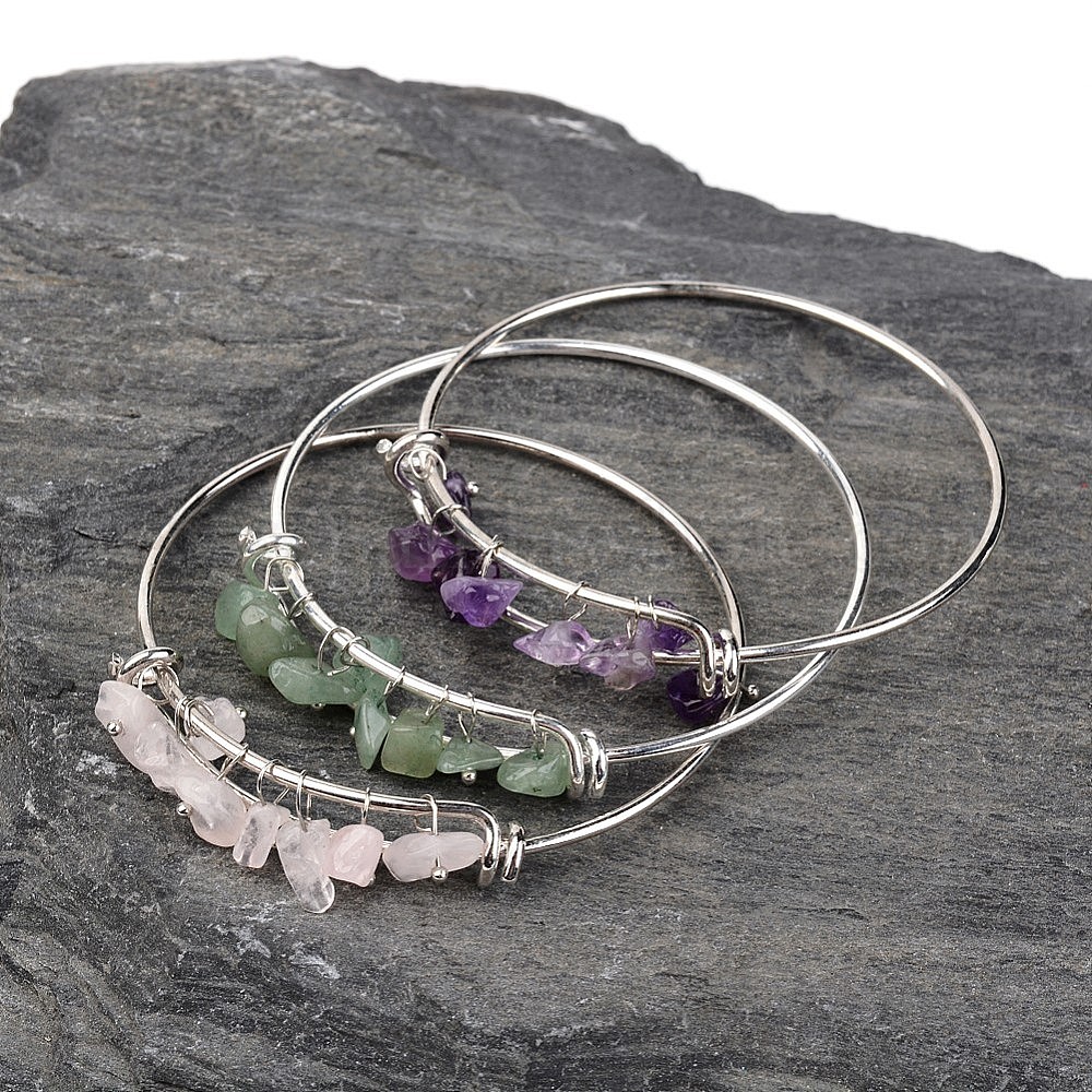 Латунные браслеты с серебряным покрытием, с природными драгоценными камнями, 64 мм