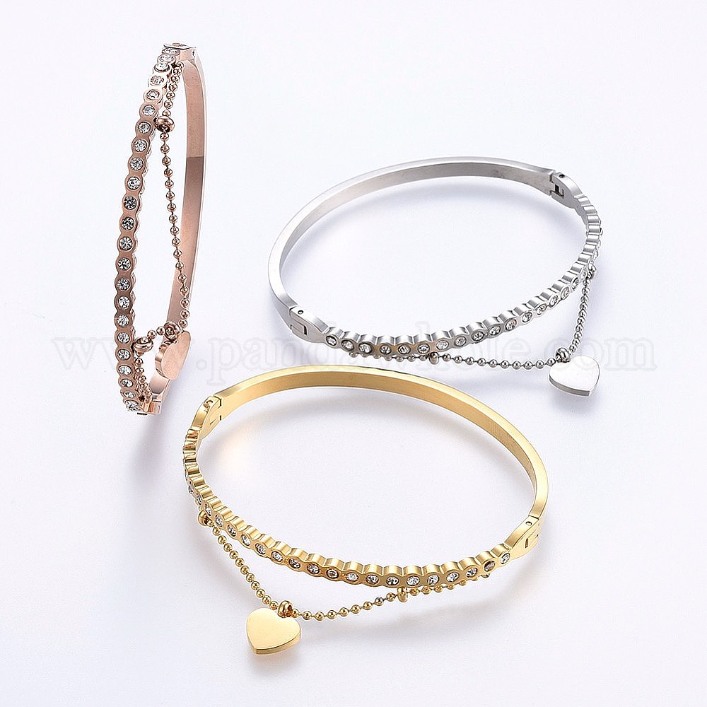 304 браслеты из нержавеющей стали, со стразами, сердце