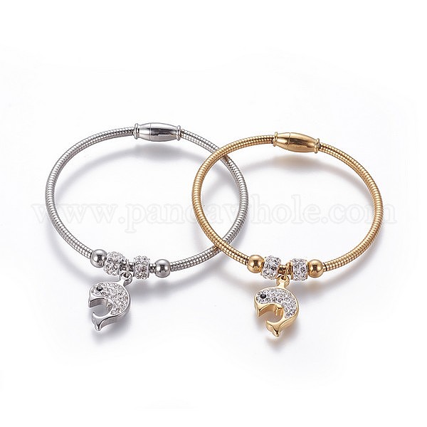 304 браслеты из нержавеющей стали, с полимерной глины горный хрусталь и магнитными застежками, дельфин