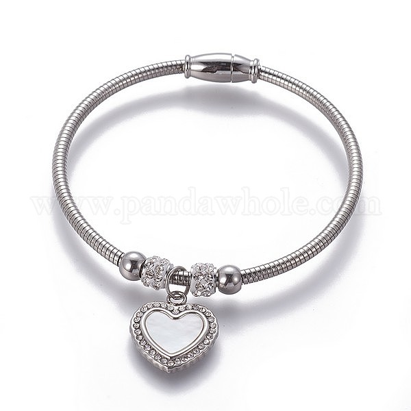 304 браслеты из нержавеющей стали, с полимерной глиной горный хрусталь, раковины и магнитные застежки, сердце