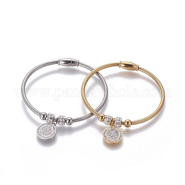 304 браслеты из нержавеющей стали, с полимерной глины горный хрусталь и магнитными застежками, плоско-круглые