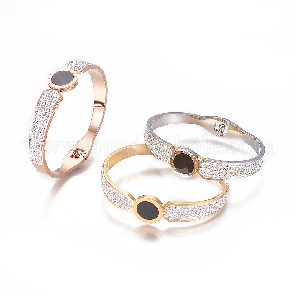 304 браслеты из нержавеющей стали, с полимерной глины и смолы горный хрусталь, плоско-круглые