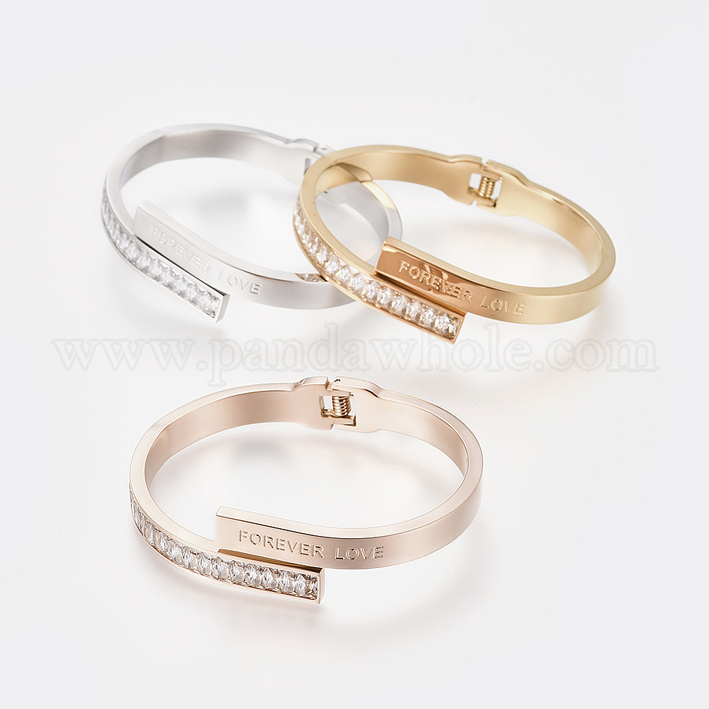 304 браслеты из нержавеющей стали, с кубического циркония, слово навсегда любовь (00Z5AD)