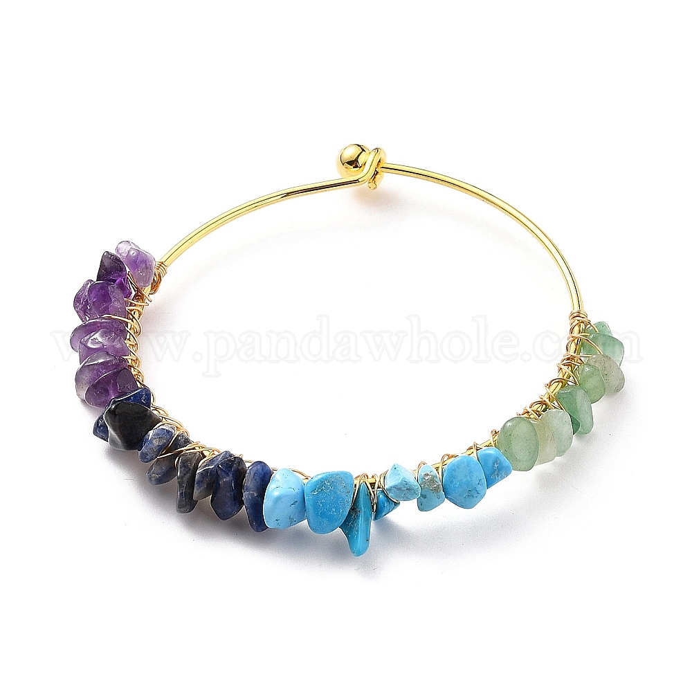 Браслеты из бусин из натуральной и синтетической крошки, с золотой медной проволокой