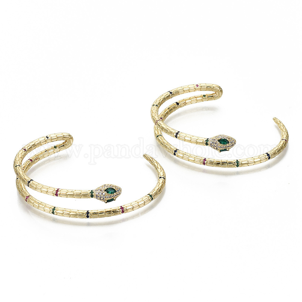 Латунь микро проложить кубического циркония манжеты браслеты, без никеля , змея, красочный