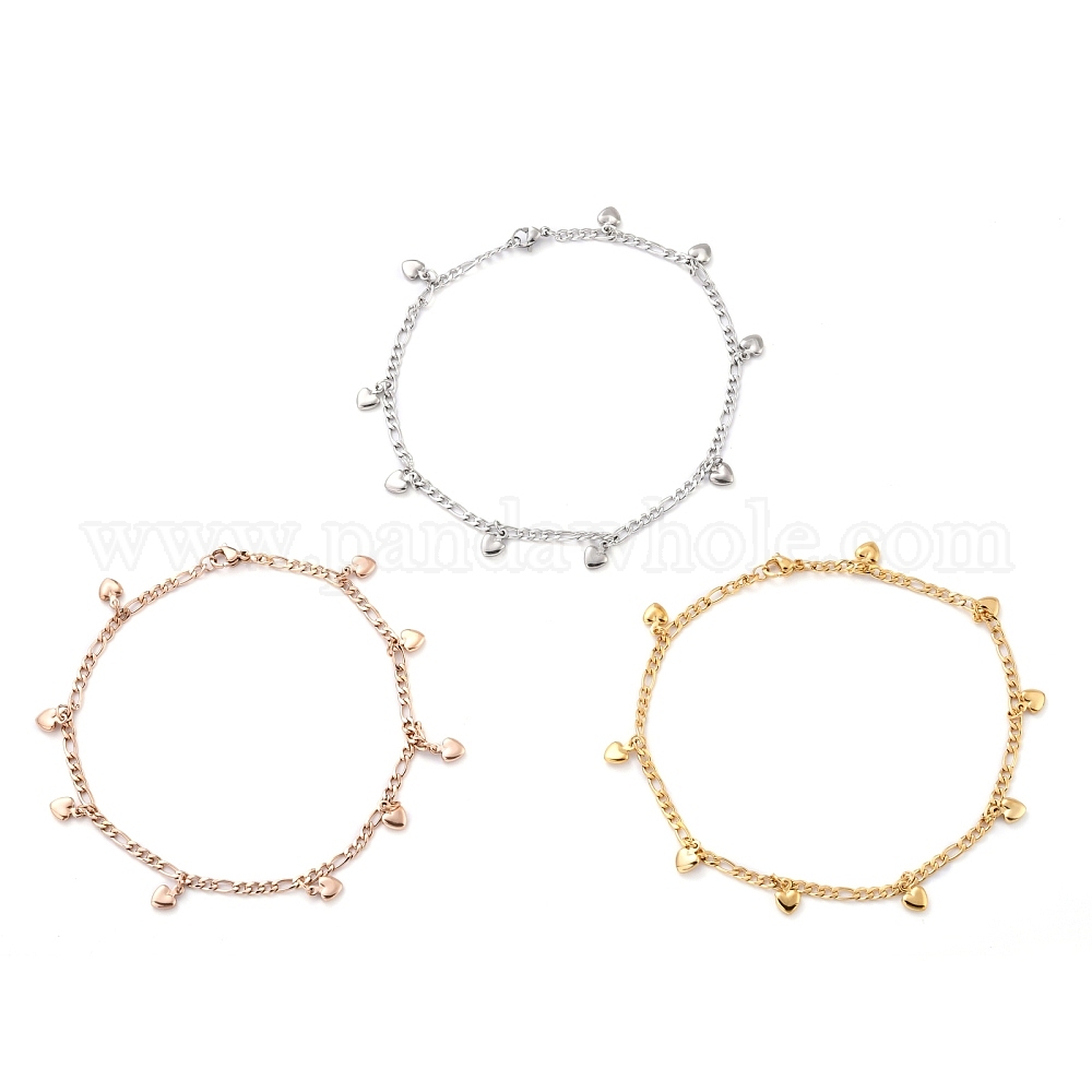 • Розовое Золото 304 из нержавеющей стали сандалеты очарование, с цепями фигаро, сердце, розовое золото , 9-5/8 дюйм (24.5 см)