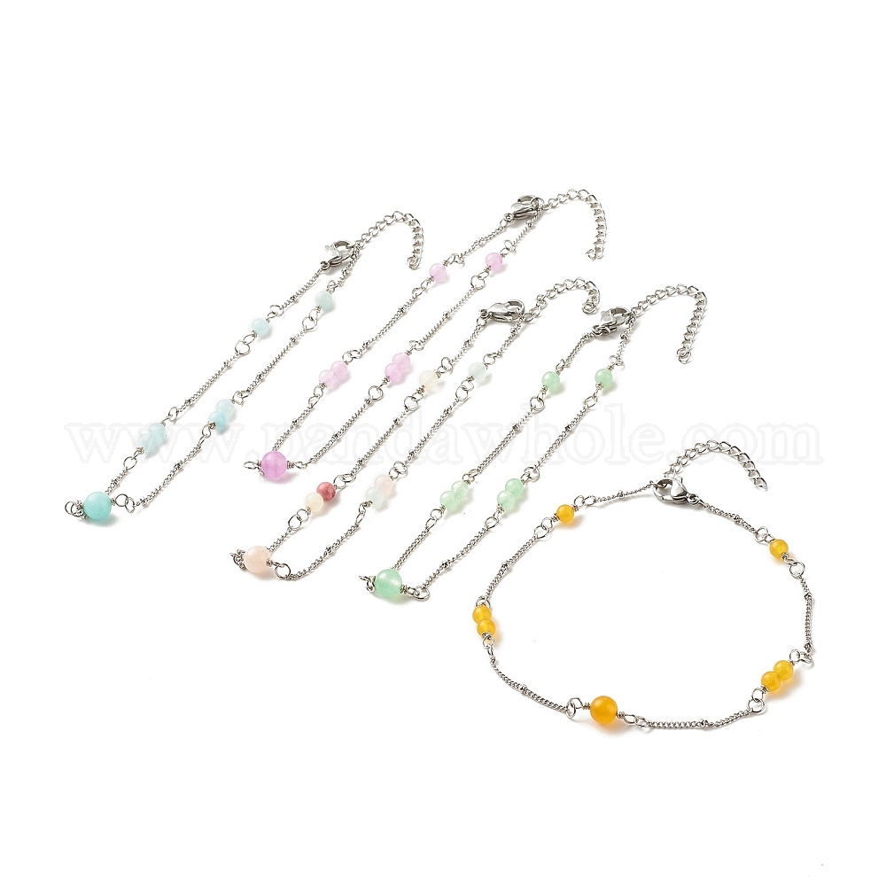 • (52) Непрозрачная лаванда Ножные браслеты из натурального окрашенного белого нефрита и малайзийского нефрита для женщин, 304 ножные браслеты с цепочками-сателлитами из нержавеющей стали, разноцветные, 9-7/8 дюйм (25 см)