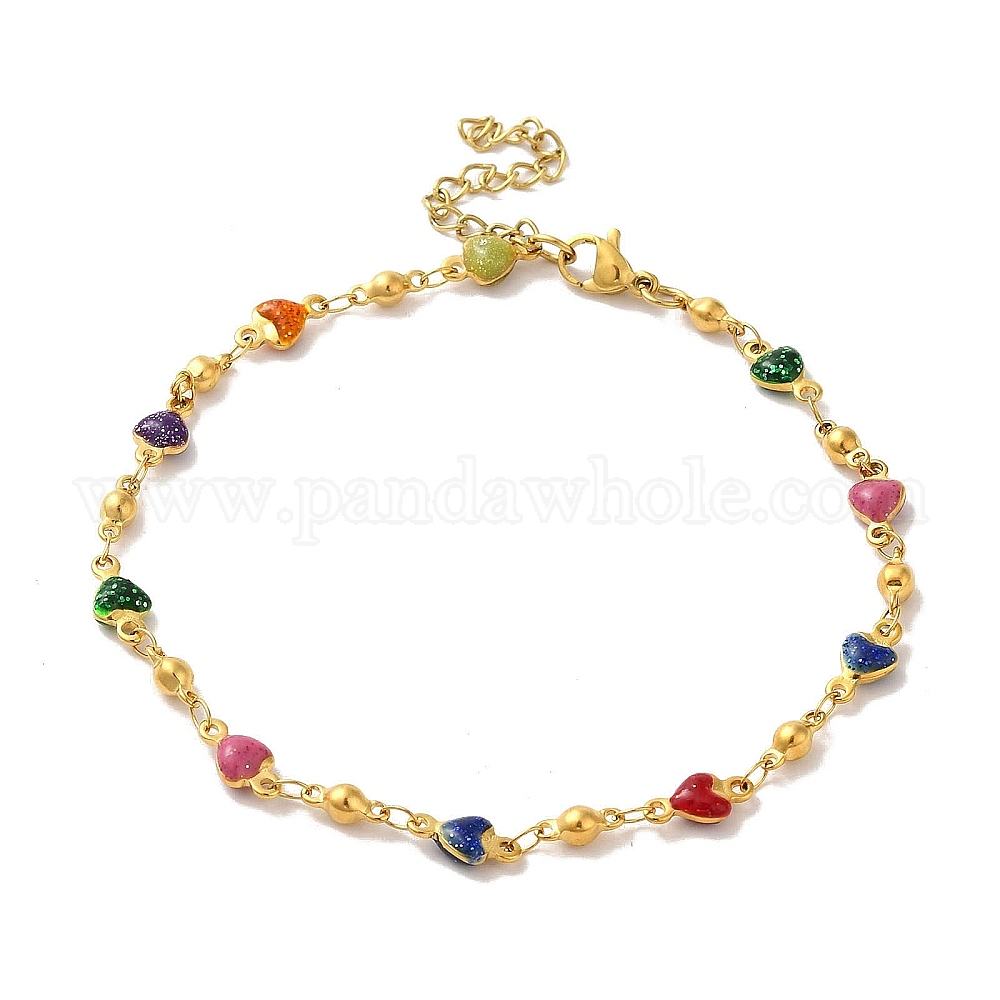• Золотой 304 браслет из нержавеющей стали, эмалевое красочное сердце для женщин, золотые, 9-1/8 дюйм (23 см)