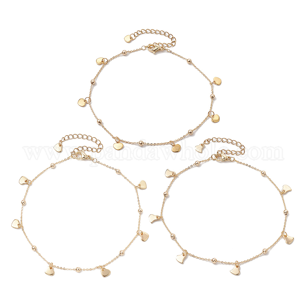 • Золотой Латунные браслеты, спутниковые сети, браслеты с подвесками в форме сердца, золотые, 8-7/8 дюйм (22.5 см)