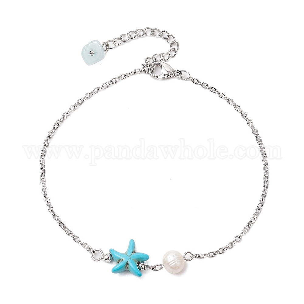 Браслеты на ногу из синтетической бирюзы и натурального пресноводного жемчуга